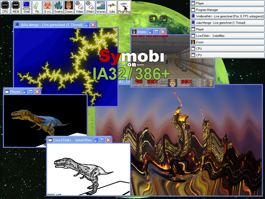 Below you find some screenshots of Symobi. Some of them are just real photographs including the hardware Symobi is running on in this case. They are made from different versions and development stages running on often completely different platforms. Therefore, some screenshots may look very different from each other. A short description of the respective platform on which the screenshot was taken is available with each screenshot. Click on the screenshot to get an enlarged picture.